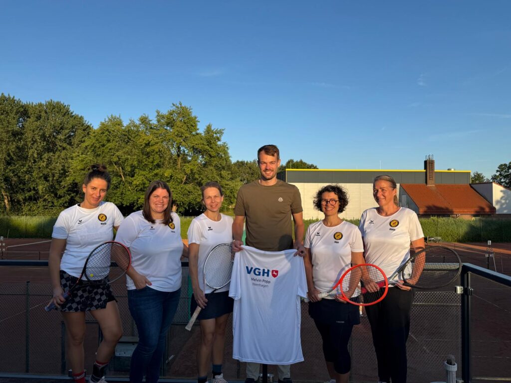 Die Damen 30 Mannschaft bedankt sich bei Melvin Popp und seiner VGH Versicherung für die neuen gesponsorten Trikots.
